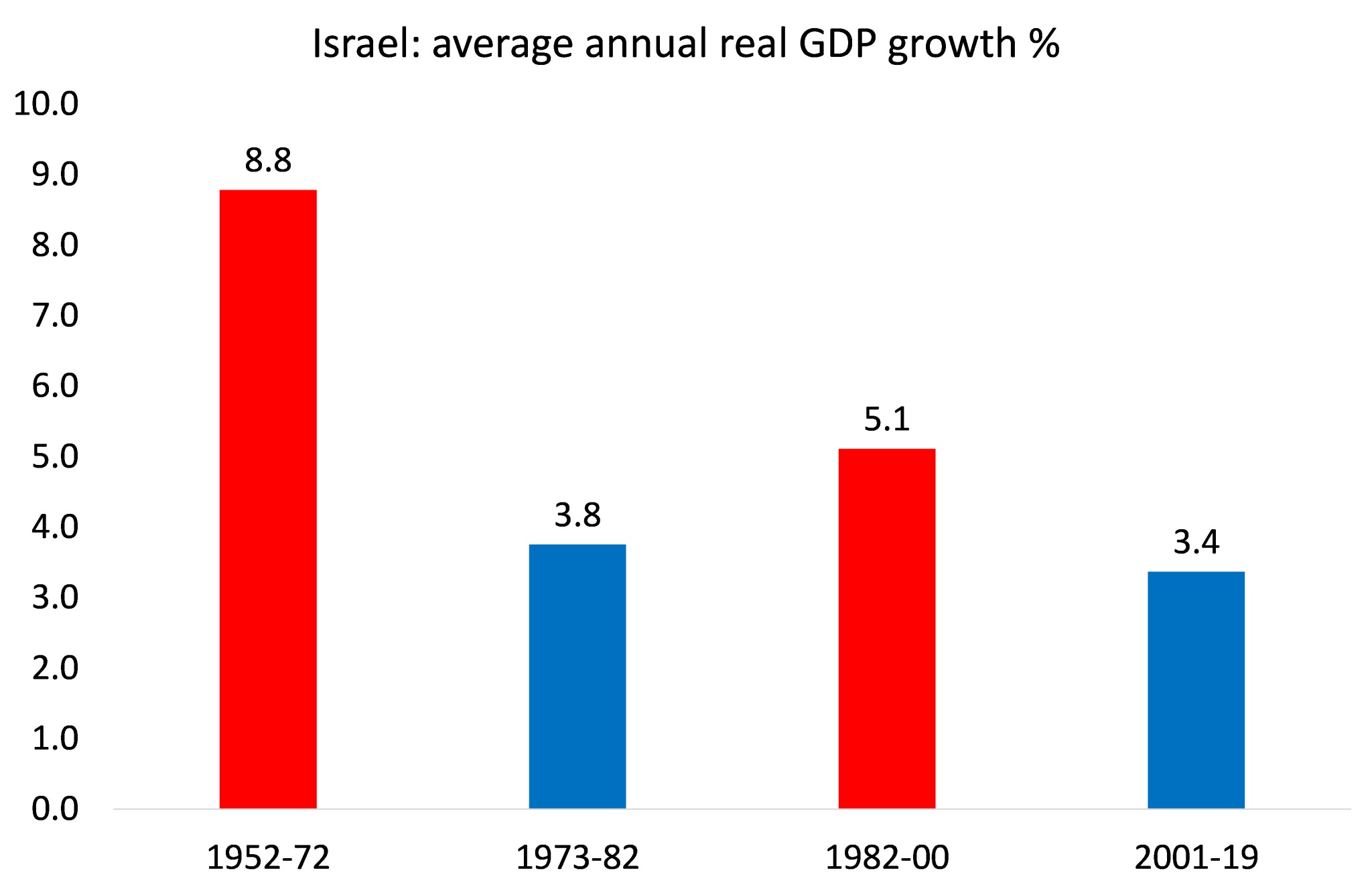 그럼에도 불구하고 △대규모 이민(유대인 인구가 두 배로 늘었다) △부유한 유대인 공동체, 특히 미국 자본으로부터 유입된 막대한 외국인 투자 △강력한 군사력 건설이 결합해 이스라엘 경제는 1948년 이래 매우 빠르게 성장했다. 이 시기는 이윤율이 높고 그만큼 투자도 활발했던 전후 자본주의의 '황금기'였다. 따라서 새로운 경제구성체가 매우 빠르게 자리잡을 수 있었다. 1948년부터 1972년까지 국민총생산(GNP)은 연평균 10.4% 성장했다. 이스라엘 경제 건설을 위한 자본은 미국의 원조와 대출, 독일의 배상금, 해외에서의 국채 판매로 조달됐다. 수익성을 높게 유지하기 위해 물가와 임금을 통제했기에 노동자의 실질소득은 그다지 많이 늘어나지 않았다.