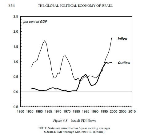 이러한 조치는 한동안 이스라엘 자본의 수익성을 높이는 데 도움이 됐다. 실제로 그래프1을 보면 1982년에서 2000년 사이 이윤율은 두 배로 올랐다. 하지만 수익성을 끌어올린 주요 원인은 붕괴한 소련과 아프리카 북부에서의 새로운 이민 물결이었다. 이민자들로 인해 고용비용이 감소했고, 오슬로협정 이후 아랍과의 '휴전'으로 외국인 투자도 크게 늘었다.