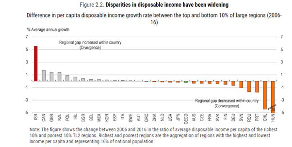 특히 이스라엘 인구의 20%를 차지하는 아랍계 시민은 더 심각한 빈곤과 불평등에 처해있다. 인구의 10분의 1인 정통파 유대인 공동체 또한 빈곤율이 높다. 가자지구와 서안지구도 정말 끔찍한 빈곤에 시달리고 있다.